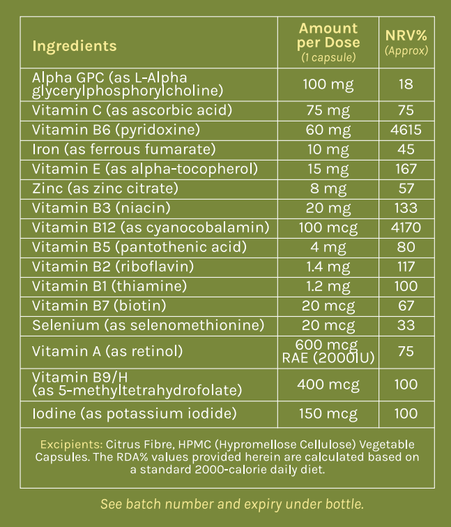 1 Month Supply: 30 Multivitamin capsules & 60 Bones Supplement capsules.