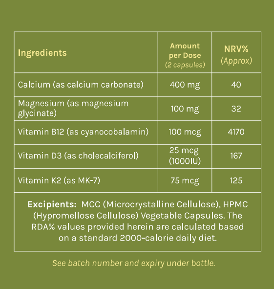 Vegan Bone Supplement: Formulated to strengthen bones, muscles, and nerves.